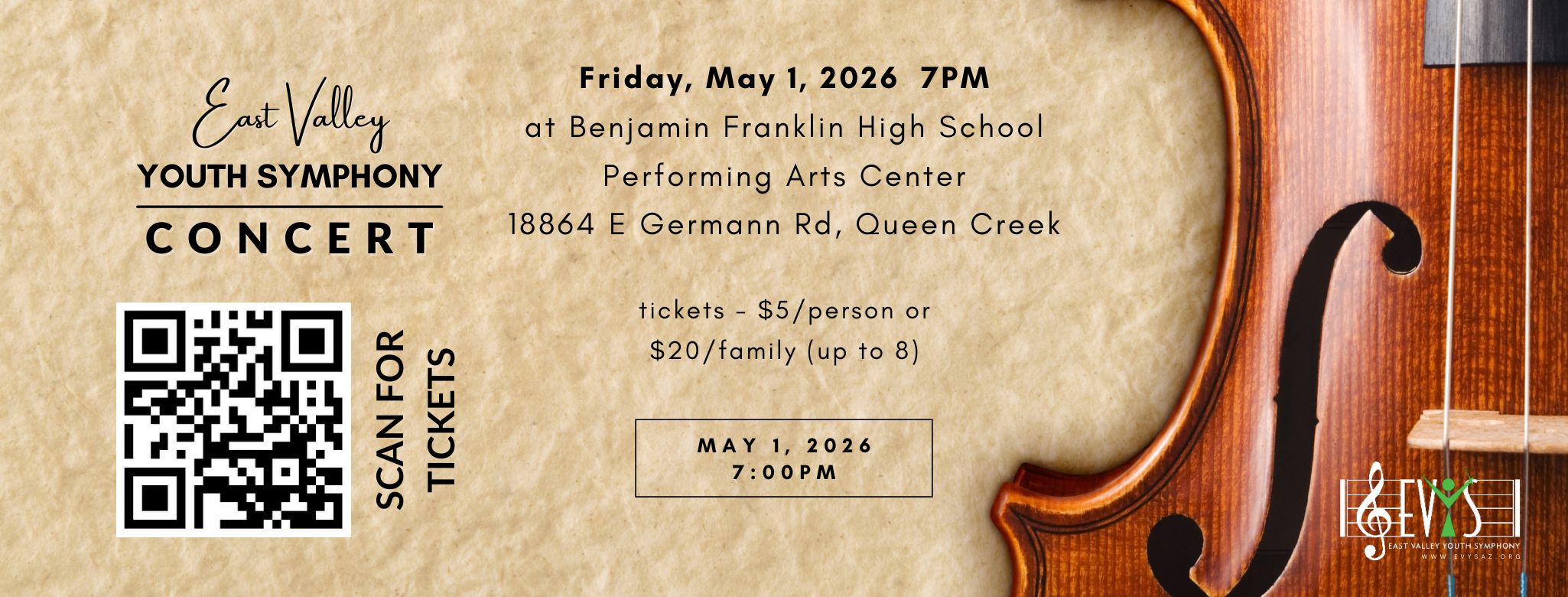 Join us for a beautiful evening of music as the East Valley Youth Symphony (EVYS) wraps up its 2025–2026 season with our final concert of the year!